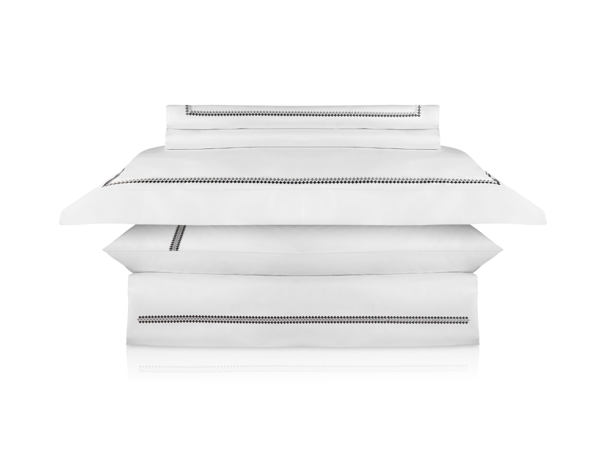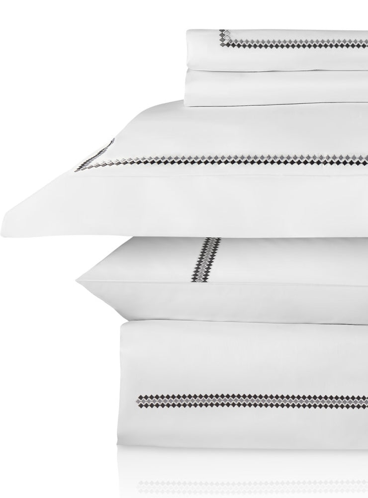Karaia Gri Nakıșlı Beyaz Pamuk Saten Çift Kişilik Nevresim Takımı 220 x 240 cm